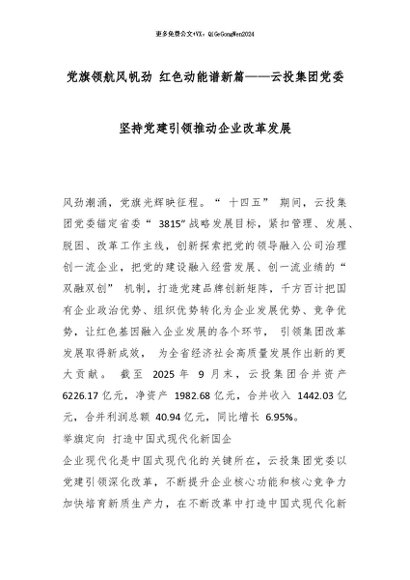【七哥公文】2026年:党旗领航风帆劲 红色动能谱新篇——云投集团党委坚持党建引领推动企业改革发展_副本+更多免费公文+VX:QiGeGongWen2024