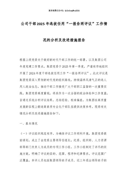 【七哥公文】2026年:公司干部2025年选拔任用“一报告两评议”工作情况的分析及改进措施报告_副本+更多免费公文+VX:QiGeGongWen2024