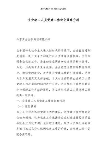 / 【七哥公文】2026年:企业政工人员党建工作优化策略分析_副本+更多免费公文+VX:QiGeGongWen2024