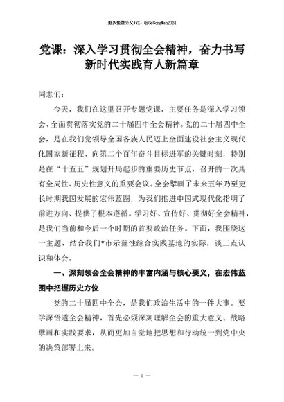 【七哥公文】2026年:党课:深入学习贯彻全会精神,奋力书写新时代实践育人新篇章+更多免费公文+VX:QiGeGongWen2024
