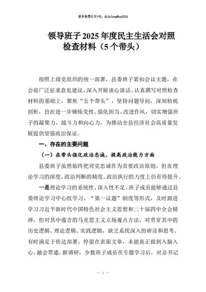 【七哥公文】2026年:领导班子2025年度民主生活会对照检查材料(5个带头)_副本+更多免费公文+VX:QiGeGongWen2024