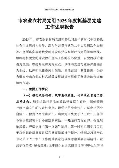 【七哥公文】2026年:市农业农村局党组2025年度抓基层党建工作述职报告_副本+更多免费公文+VX:QiGeGongWen2024