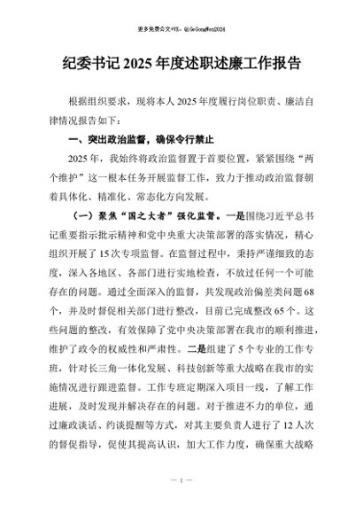 / 【七哥公文】2026年:纪委书记2025年度述职述廉工作报告_副本+更多免费公文+VX:QiGeGongWen2024