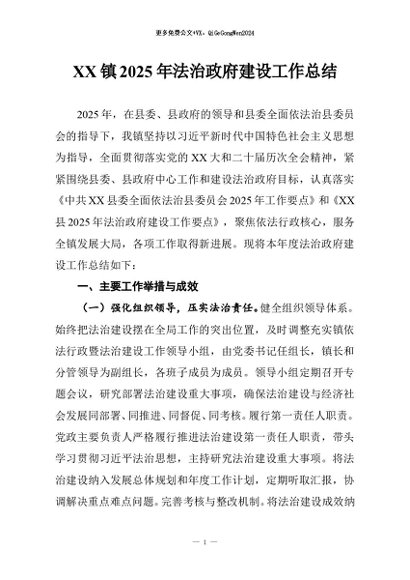/ 【七哥公文】2026年:XX镇2025年法治政府建设工作总结_副本+更多免费公文+VX:QiGeGongWen2024