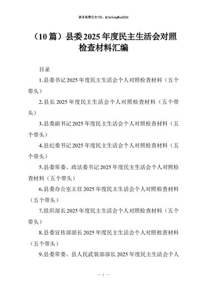 【七哥公文】2026年:(10篇)县委2025年度民主生活会对照检查材料汇编_副本+更多免费公文+VX:QiGeGongWen2024