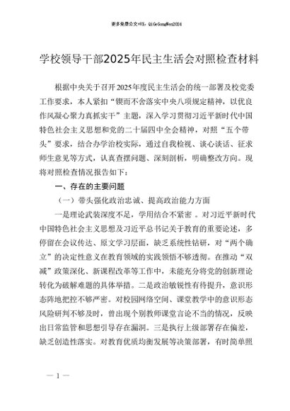 【七哥公文】2026年:学校领导干部2025年民主生活会对照检查材料_副本+更多免费公文+VX:QiGeGongWen2024
