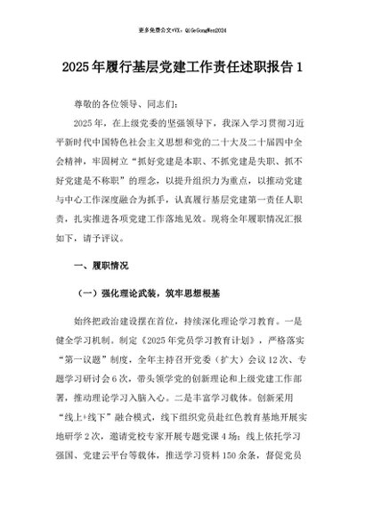 / 【七哥公文】2026年:2025年履行基层党建工作责任述职报告1+更多免费公文+VX:QiGeGongWen2024