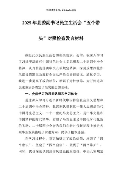 【七哥公文】2026年:2025年县委副书记民主生活会“五个带头”对照检查发言材料(1)+更多免费公文+VX:QiGeGongWen2024