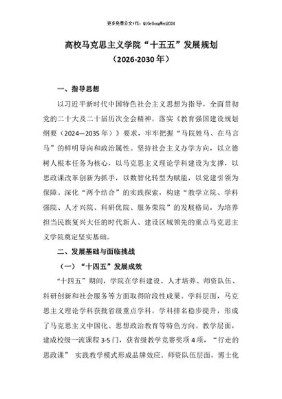 【七哥公文】2026年:高校马克思主义学院“十五五”发展规划(2026-2030年)1+更多免费公文+VX:QiGeGongWen2024