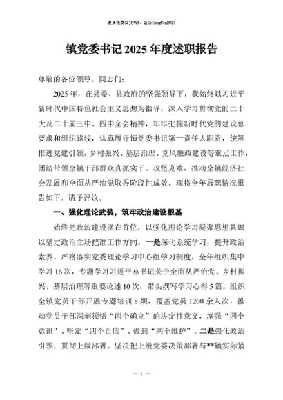 / 【七哥公文】2026年:镇党委书记2025年度述职报告_副本+更多免费公文+VX:QiGeGongWen2024