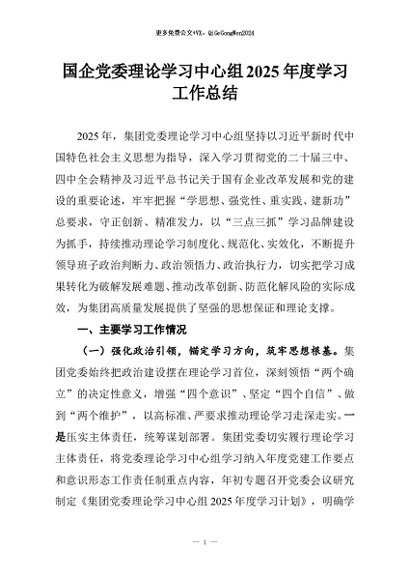 【七哥公文】2026年:国企党委理论学习中心组2025年度学习工作总结_副本+更多免费公文+VX:QiGeGongWen2024