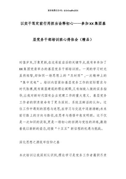 【七哥公文】2026年:以实干笃定前行用担当诠释初心——参加XX集团基层党务干部培训班心得体会(精品)_副本+更多免费公文+VX:QiGeGongWen2024
