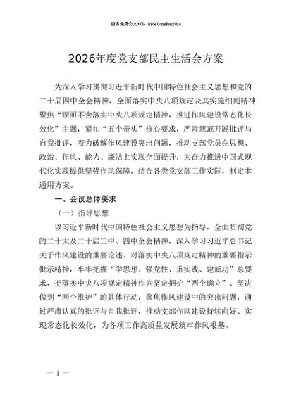 / 【七哥公文】2026年:2026年度党支部民主生活会方案+更多免费公文+VX:QiGeGongWen2024