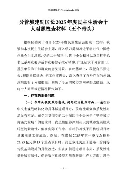 【七哥公文】2026年:分管城建副区长2025年度民主生活会个人对照检查材料(五个带头)_副本+更多免费公文+VX:QiGeGongWen2024