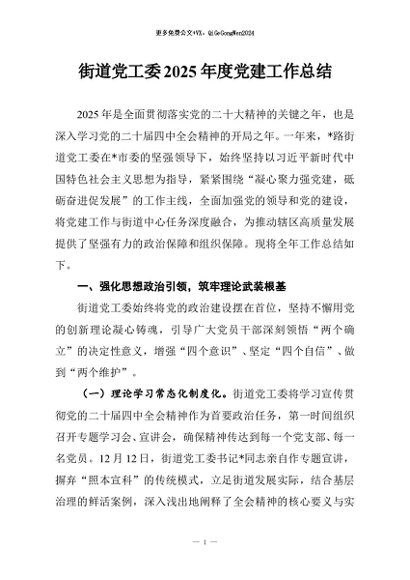 / 【七哥公文】2026年:街道党工委2025年度党建工作总结_副本+更多免费公文+VX:QiGeGongWen2024