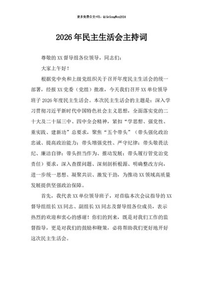 / 【七哥公文】2026年:2026年民主生活会主持词+更多免费公文+VX:QiGeGongWen2024