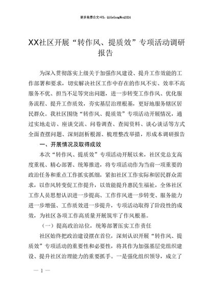 / 【七哥公文】2026年:XX社区开展“转作风、提质效”专项活动调研报告+更多免费公文+VX:QiGeGongWen2024