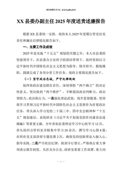 / 【七哥公文】2026年:XX县委办副主任2025年度述责述廉报告_副本+更多免费公文+VX:QiGeGongWen2024