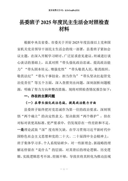 / 【七哥公文】2026年:县委班子2025年度民主生活会对照检查材料_副本+更多免费公文+VX:QiGeGongWen2024