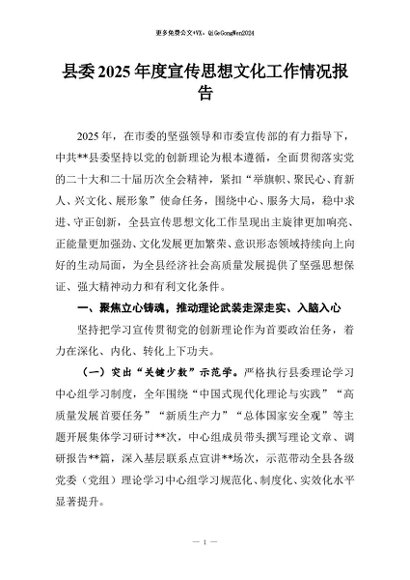 / 【七哥公文】2026年:县委2025年度宣传思想文化工作情况报告_副本+更多免费公文+VX:QiGeGongWen2024