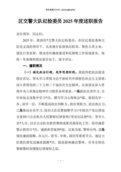 / 【七哥公文】2026年:区交警大队纪检委员2025年度述职报告_副本+更多免费公文+VX:QiGeGongWen2024