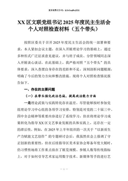 【七哥公文】2026年:XX区文联党组书记2025年度民主生活会个人对照检查材料(五个带头)_副本+更多免费公文+VX:QiGeGongWen2024