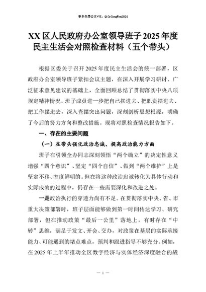 【七哥公文】2026年:XX区人民政府办公室领导班子2025年度民主生活会对照检查材料(五个带头)_副本+更多免费公文+VX:QiGeGongWen2024