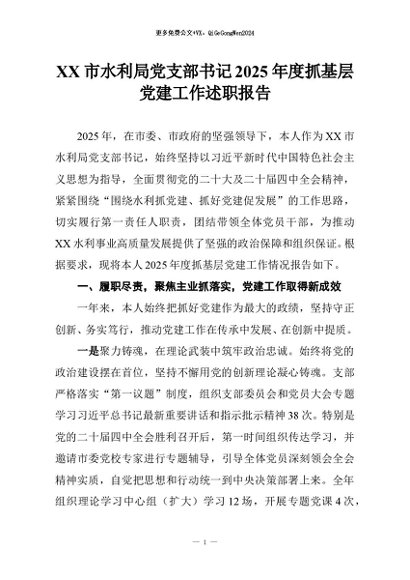 【七哥公文】2026年:XX市水利局党支部书记2025年度抓基层党建工作述职报告_副本+更多免费公文+VX:QiGeGongWen2024