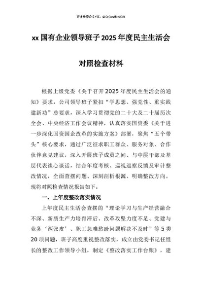【七哥公文】2026年:xx国有企业领导班子2025年度民主生活会对照检查材料+更多免费公文+VX:QiGeGongWen2024