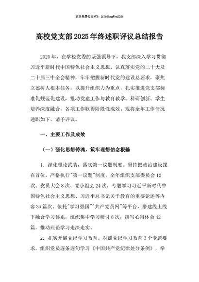 / 【七哥公文】2026年:高校党支部2025年终述职评议总结报告+更多免费公文+VX:QiGeGongWen2024