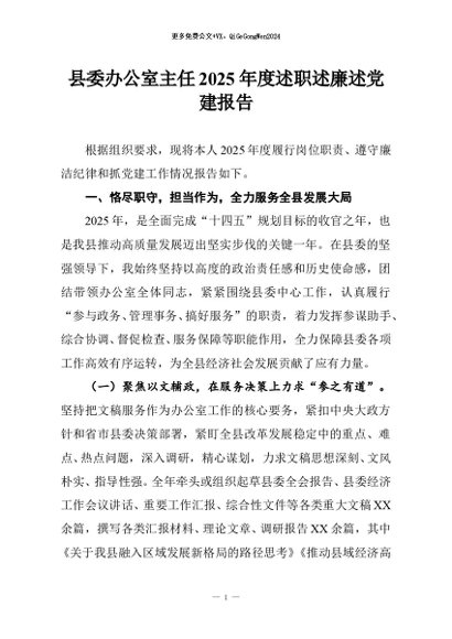 / 【七哥公文】2026年:县委办公室主任2025年度述职述廉述党建报告_副本+更多免费公文+VX:QiGeGongWen2024