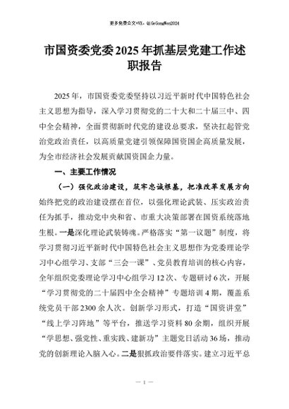 / 【七哥公文】2026年:市国资委党委2025年抓基层党建工作述职报告+更多免费公文+VX:QiGeGongWen2024