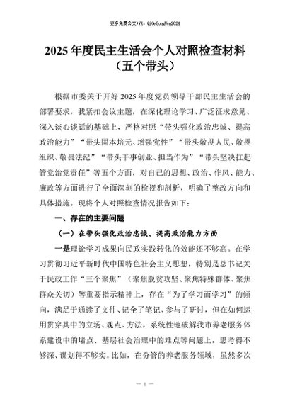 【七哥公文】2026年:2025年度民主生活会个人对照检查材料(五个带头)_副本+更多免费公文+VX:QiGeGongWen2024