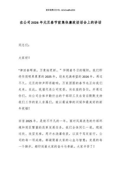 【七哥公文】2026年:在公司2026年元旦春节前集体廉政谈话会上的讲话_副本+更多免费公文+VX:QiGeGongWen2024