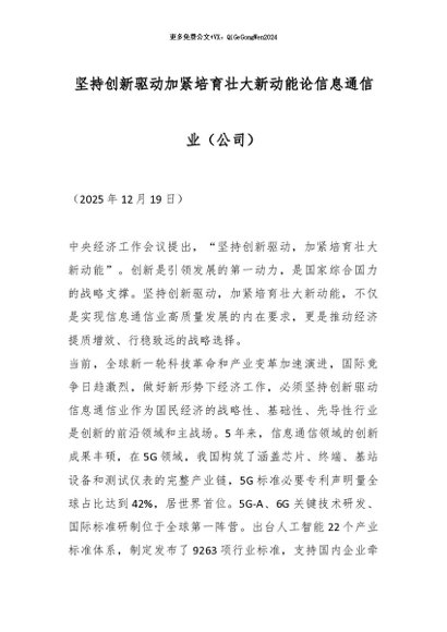 【七哥公文】2026年:坚持创新驱动加紧培育壮大新动能论信息通信业(公司)_副本+更多免费公文+VX:QiGeGongWen2024