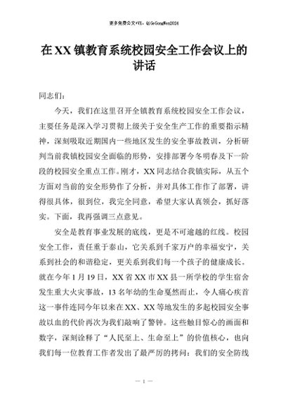 / 【七哥公文】2026年:在XX镇教育系统校园安全工作会议上的讲话+更多免费公文+VX:QiGeGongWen2024