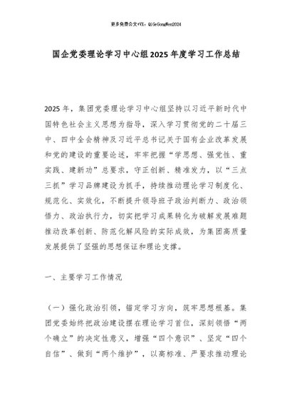 【七哥公文】2026年:国企党委理论学习中心组2025年度学习工作总结_副本+更多免费公文+VX:QiGeGongWen2024