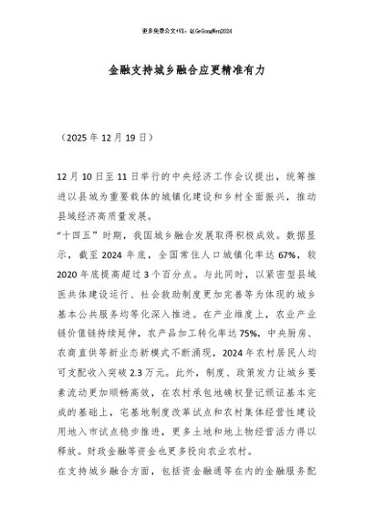 / 【七哥公文】2026年:金融支持城乡融合应更精准有力_副本+更多免费公文+VX:QiGeGongWen2024