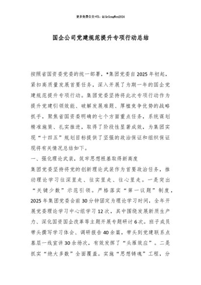 / 【七哥公文】2026年:国企公司党建规范提升专项行动总结_副本+更多免费公文+VX:QiGeGongWen2024