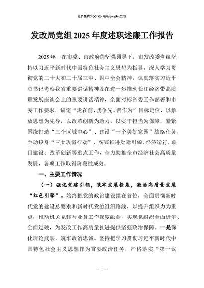 / 【七哥公文】2026年:发改局党组2025年度述职述廉工作报告+更多免费公文+VX:QiGeGongWen2024