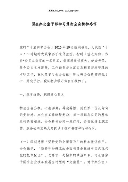 / 【七哥公文】2026年:国企办公室干部学习贯彻全会精神感悟_副本+更多免费公文+VX:QiGeGongWen2024