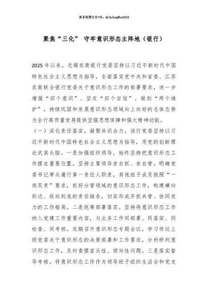/ 【七哥公文】2026年:聚焦“三化” 守牢意识形态主阵地(银行)_副本+更多免费公文+VX:QiGeGongWen2024