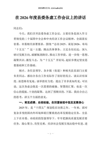 / 【七哥公文】2026年:在2026年度县委务虚工作会议上的讲话+更多免费公文+VX:QiGeGongWen2024