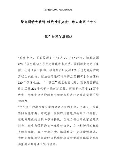 【七哥公文】2026年:绿电涌动大渡河 银线情系夹金山雅安电网“十四五”时期发展综述_副本+更多免费公文+VX:QiGeGongWen2024