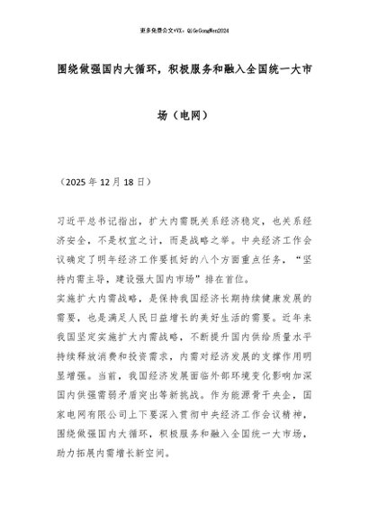 【七哥公文】2026年:围绕做强国内大循环,积极服务和融入全国统一大市场(电网)_副本+更多免费公文+VX:QiGeGongWen2024