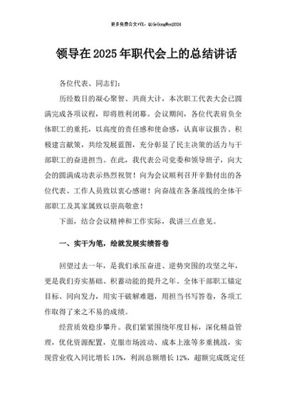 / 【七哥公文】2026年:领导在2025年职代会上的总结讲话+更多免费公文+VX:QiGeGongWen2024