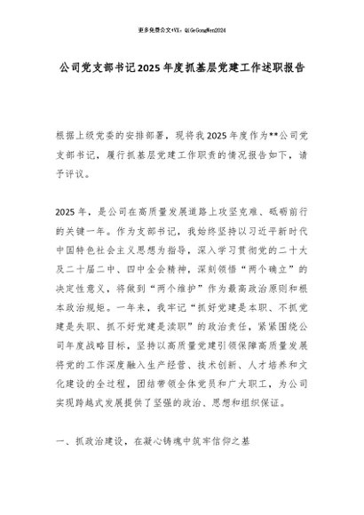 【七哥公文】2026年:公司党支部书记2025年度抓基层党建工作述职报告_副本+更多免费公文+VX:QiGeGongWen2024