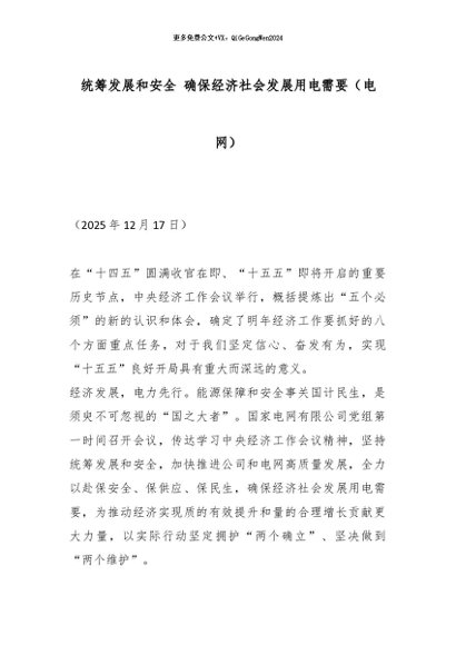 【七哥公文】2026年:统筹发展和安全 确保经济社会发展用电需要(电网)_副本+更多免费公文+VX:QiGeGongWen2024