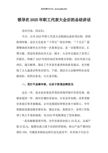 / 【七哥公文】2026年:领导在2025年职工代表大会后的总结讲话+更多免费公文+VX:QiGeGongWen2024