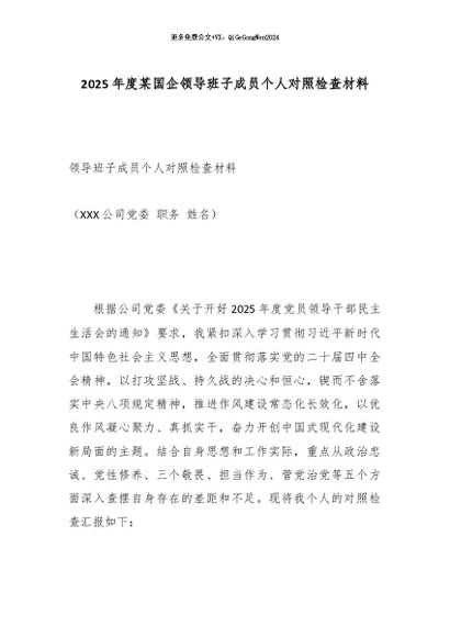 【七哥公文】2026年:2025年度某国企领导班子成员个人对照检查材料_副本+更多免费公文+VX:QiGeGongWen2024